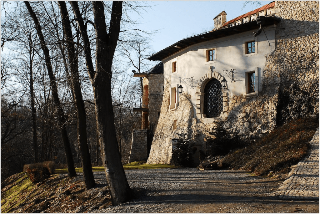 One local legend tells of a remarkable bridge that once supposedly linked the castle with the church on the neighbouring hill. In the fifteenth century, so the story goes, the two hills were connected by a swaying footbridge plaited from leather thongs, slung high above the valley. The castle’s owners are said to have crossed it to attend services, walking literally “above the heads” of ordinary villagers. One day tragedy struck: the bold daughter of the lord of the manor attempted to cross the bridge and fell into the chasm between the hills. Her grief‑stricken mother wept so much that her tears formed a new stream. According to the legend, those tears gave rise to the Korzkiewka River flowing at the foot of the castle.
